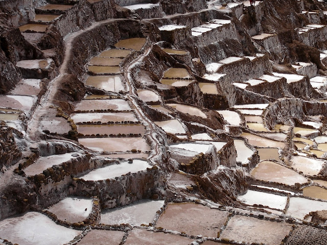 Quittons CUZCO pour traverser de magnifiques paysages. Arrêt au marché de PISAC : les cochons d'inde sont prêts pour la broche. Le marché est coloré, les locaux portent différents chapeaux suivant leur ethnie. Visite des salines de MARRAS avant d'arriver à OLLANTAYTAMBO pour prendre le train pour le MACHUPICCHU.